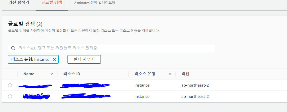 EC2 인스턴스가 안보임? -> 인스턴스 글로벌 보기 확인. 없던 인스턴스 확인 가능