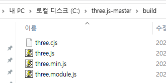 three.module.js : 모듈방식으로 개발할 수 있는 라이브러리 => 이걸 사용할 거임.