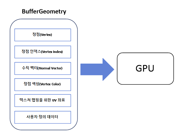 Geometry는 3차원 객체 형상을 정의한다. Geometry의 형상을 정의하기 위한 데이터는 아래 그림과 같다.