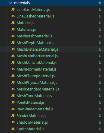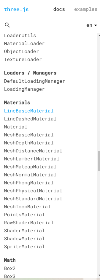 Material들이 앞에 단어가 Line, Mesh, Points 등이 있는데 각 Object3D의 파생클래스인 Points, Line, Mesh와 관련 있다는 것을 알 수 있다.