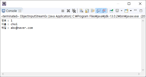 // ObjectInputStream 은 스트림으로 부터 읽어들인 직렬화된 객체를 역직렬화해서 객체를 생성할 수 있다.