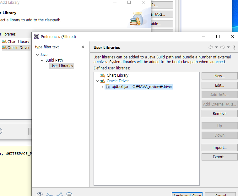 * 여기서 JDBC Driver은 데이터베이스의 종류마다 다르기 때문에 종류와 버전에 맞는 Driver를 맞게 사용해줘야 한다.