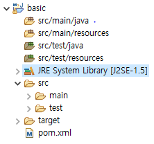 1. java 폴더(/src/main/java)의 경우 특별한 것은 없고, 앞으로 만들어지는 자바 파일들이 관리되는 폴더이다.
