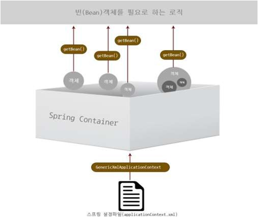 - 스프링 Container에 만들어둔 각종 클래스(bean) 들은 서로 의존적이다.