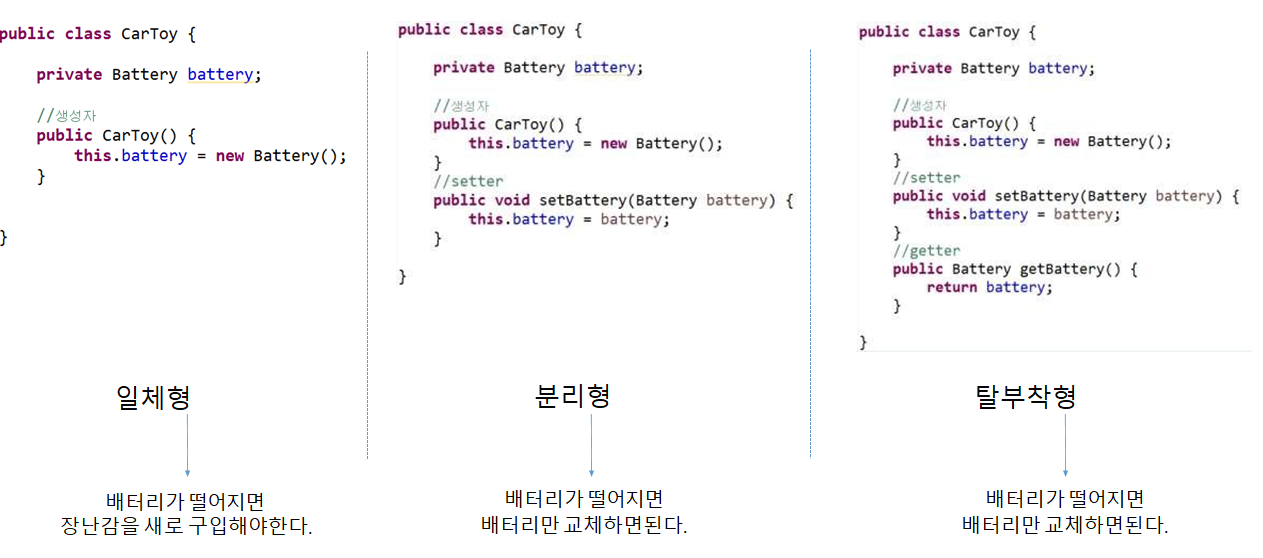 => 의존성 주입을 하지 않은 기존의 java를 사용할때는 이렇게 MainClass에서 처럼 생성자에 직접 객체를 넣어주어야한다.
