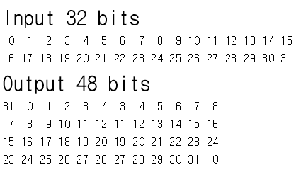 이런방식으로 sbox 8 개가 매핑을 통해 48비트를 32비트로 변경 시킴.