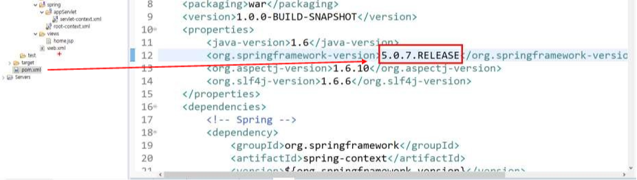 - 스프링 5버전을 사용하기 위해 pom.xml 을 다음과 같이 변경합니다.