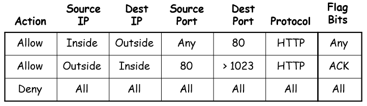 if 내부에서 외부로 나갈때 어떤 소스라도, 80번 포트 프로토콜 HTTP, Any flag bits => 허용 (웹서버에 요청)