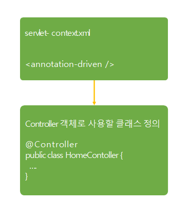 - Controller 객체로 사용할 클래스를 정의해준다.