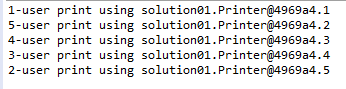 printer.print(Thread.currentThread().getName() + " print using " + printer.toString() + ".");