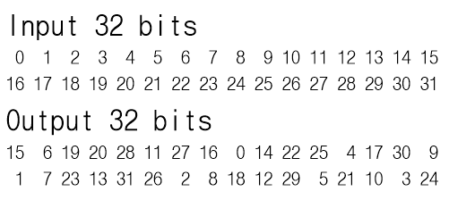 이런방식으로 sbox 8 개가 매핑을 통해 48비트를 32비트로 변경 시킴.